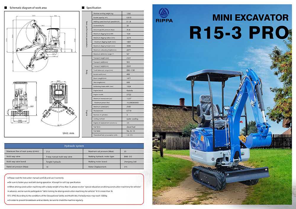 R15ECO is a 1.5t mini excavator, a high-configuration mini excavator with pilot control and telescopic tilt. Mini excavator Rippa R15ECO. This machine is advanced and widely used in greenhouse, indoor and landscaping applications, for example, it can be used for fertilization, deep garden excavation, channel excavation, tree planting, cable trench excavation, water pipe opening, room crushing, etc. The operation is simple and flexible, and it only takes a few minutes to get familiar with the configuration options.
