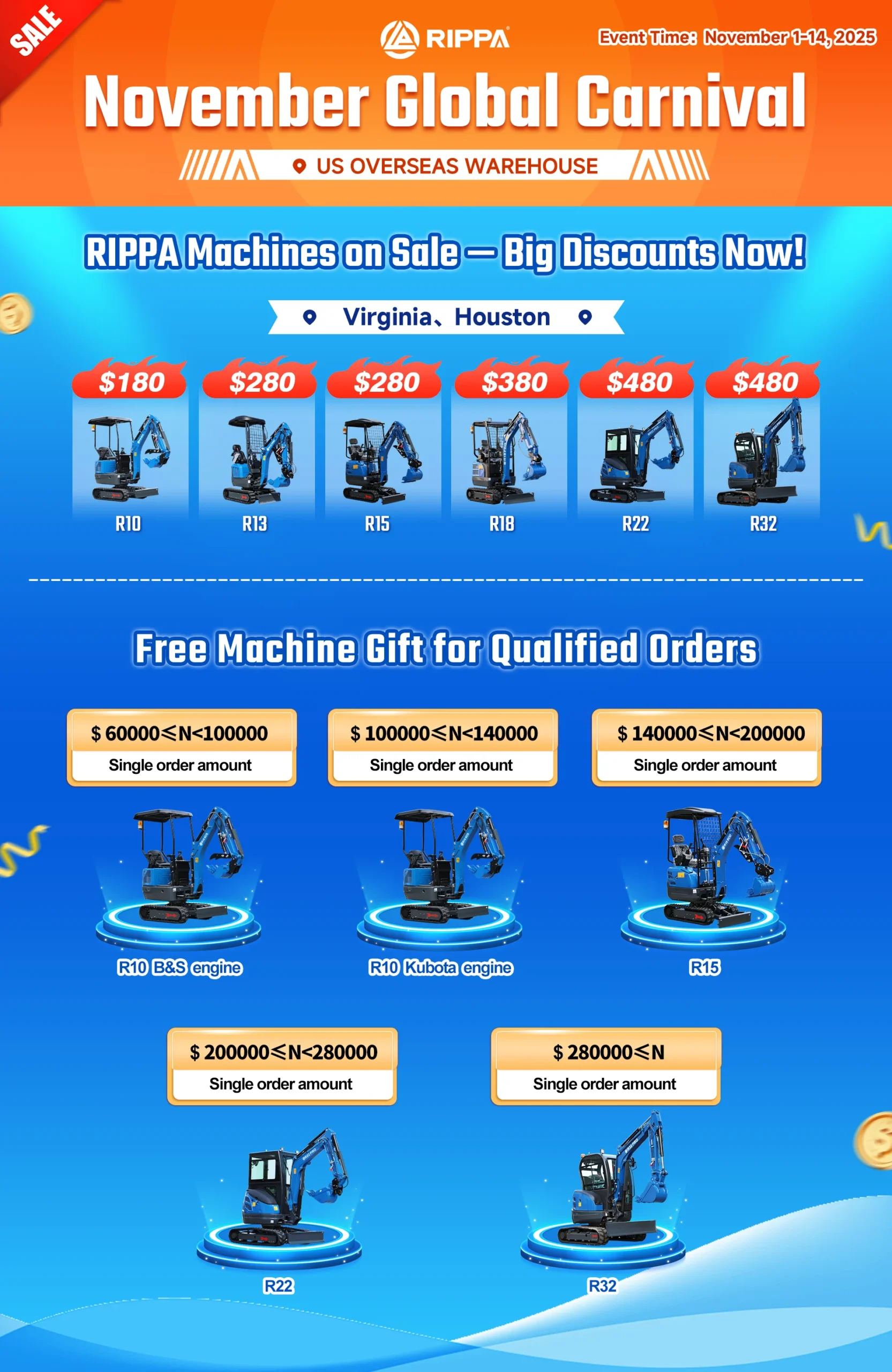 RIPPA Launches November Global Carnival: Major Thanksgiving & Black Friday Offers Announced for US, Europe, and China-Mini Excavators For Sale - Rippa® China Manufacturer