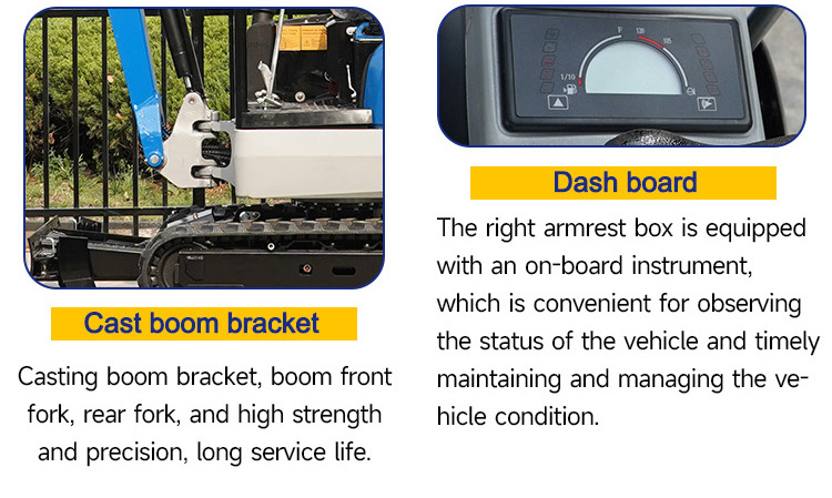 – Excavation arm and bucket configuration, adapted to various construction needs.