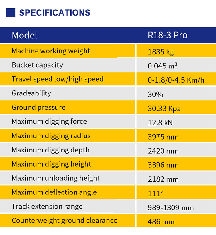 As an efficient and reliable small excavator, RIPPA R18 Mini Excavator is equipped with an 11.8kW (16 horsepower) engine, with strong power and excellent working ability. It is widely used in various scenarios such as construction, landscaping and municipal engineering. Its compact design combined with excellent control performance allows it to be flexible and maneuverable in a small space to meet the needs of various complex working conditions