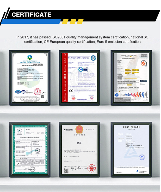2. Certificações do produto: CE / ISO / EURO5 / EPA / SGS / ECM