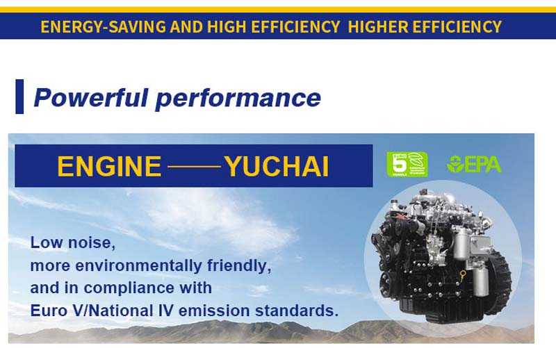 Powerful engine: Equipped with turbocharged engine, meets Euro V/EPA 4 emission standards, powerful and efficient.