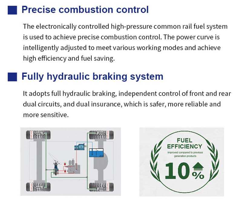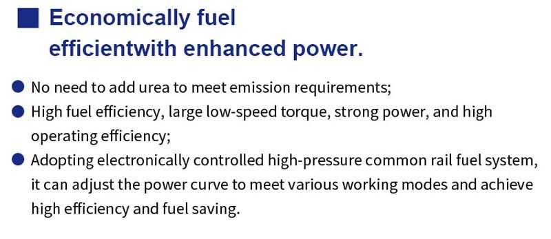 Adopting electronically controlled high-pressure common rail fuel system to achieve precise combustion control, intelligently adjust the power curve according to different working modes, and improve efficiency and fuel economy.