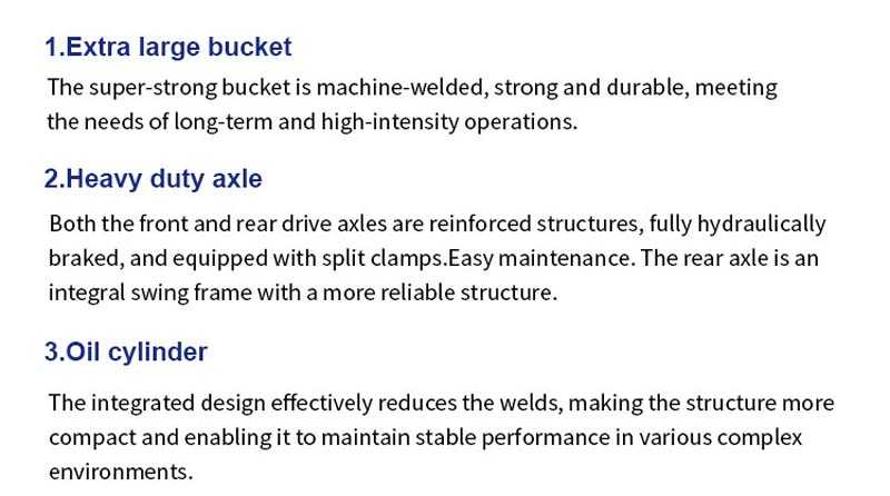 Provide a variety of auxiliary equipment that can be quickly replaced, such as snow shovels, wooden forks, forklifts, bulldozers, 4-in-1 buckets, 6-in-1 buckets, etc., to meet different operation needs.