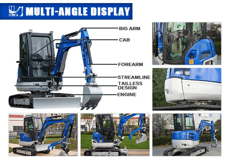 Rippa l330 is a tailless excavator that can operate in small areas, so it is called a perfect excavator.The l330 uses Kubota D902 engine, which is powerful and can operate at the fastest speed.The tailless design achieves the characteristics of energy saving, environmental protection, fuel saving, flexible operation and high operating efficiency.