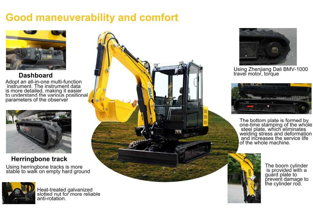 The rippa 3.5-ton mini excavator can be equipped with Kubota or Yanmar engines. Both brands are well-known in the industry for their excellent performance and reliability. Kubota engines provide stable and powerful power output for excavators with their high efficiency, low noise and low fuel consumption; while Yanmar engines have won the trust of users with their excellent durability and good fuel economy. .