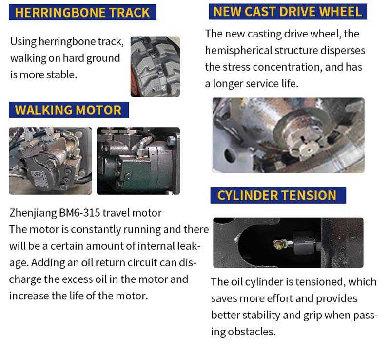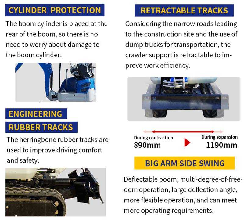 Retractable track: The track width is adjustable (890-1190mm) to adapt to different working environments and improve stability and passability.