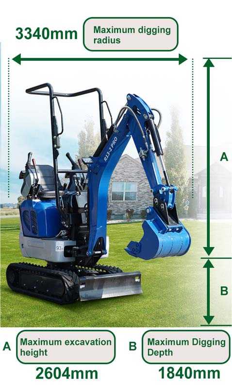Maximum excavation force 9.8kN, maximum excavation radius 3346mm, maximum excavation depth 1843mm, meeting different excavation needs。