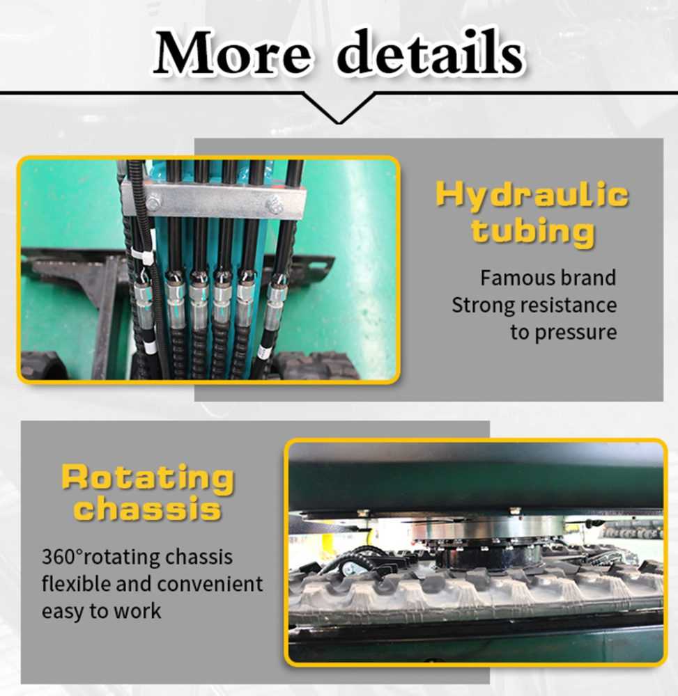 Rippa L330 excavator: used in various working environments such as road repair, concrete crushing, cable laying, water pipeline laying, garden cultivation, river and ditch dredging projects, and construction projects. It has the functions of excavation, crushing, ditch clearing, drilling, bulldozing, etc.