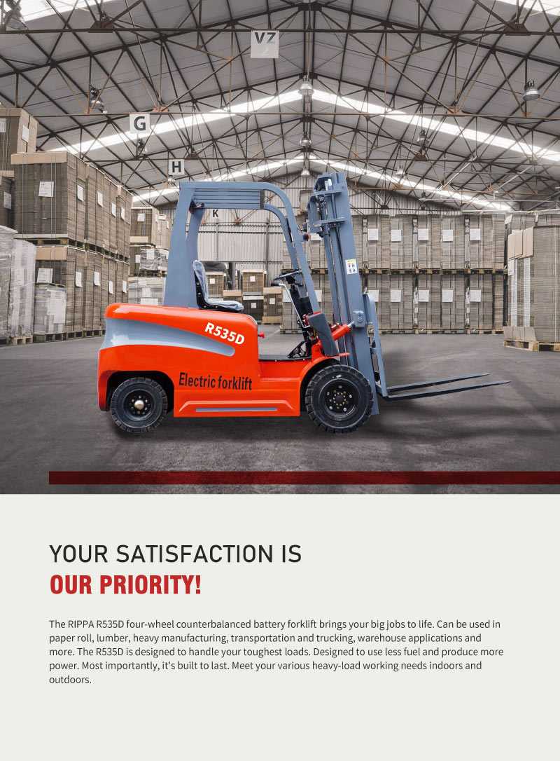 Welcome to learn about the R550N electric forklift under the Rippa brand. This forklift is a high-quality, high-performance electric forklift that we have carefully developed and designed specifically to meet the high requirements of the foreign export market. The R550N electric forklift has won the favor of many customers around the world with its excellent performance, stable operation and excellent durability.
