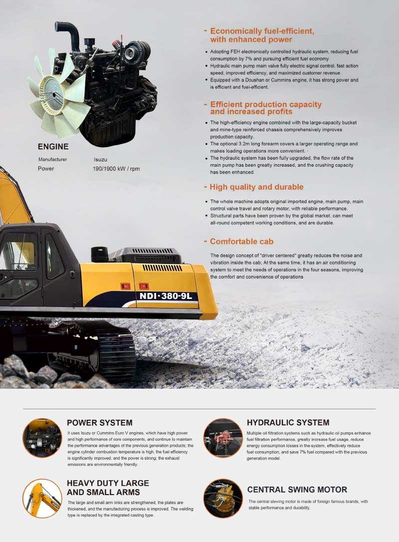 Powerful power: Equipped with a 190kW engine, it can provide excellent power at a speed of 1900 rpm, ensuring efficient operation in various working conditions.