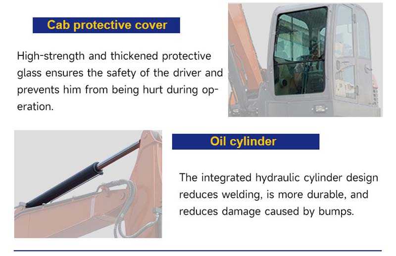 The 6-ton excavator provides powerful hydraulic and engine power for tough digging and heavy lifting. Equipped with a 38.1kw Yanmar engine, the digging depth can reach 3890mm.