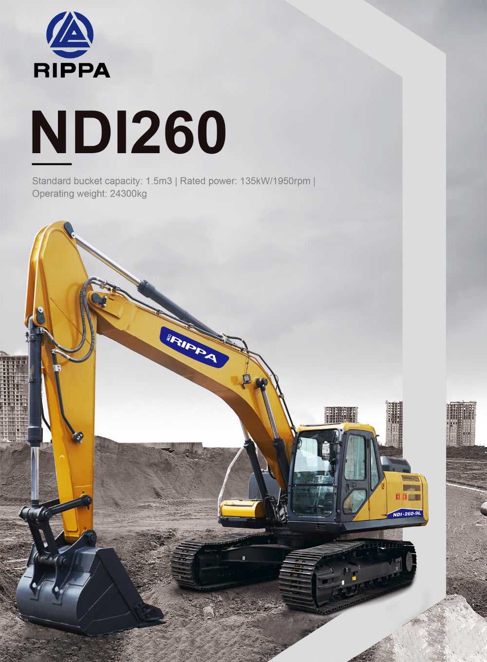 The Rippa 24-ton excavator is a large excavator with excellent performance and complete functions. The Rippa 24 excavator adopts an advanced hydraulic system and has fast and stable excavation performance, which can greatly improve operating efficiency. Equipped with a high-power engine and large-diameter working device, it can easily handle various hard soil and rock excavation operations. With its excellent performance and wide range of application scenarios, the NDI260 excavator has become an ideal choice for engineering contractors and self-employed individuals. For more information please contact us