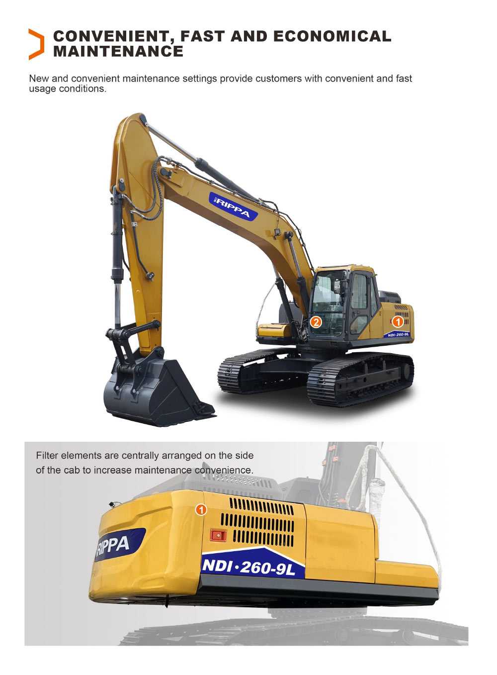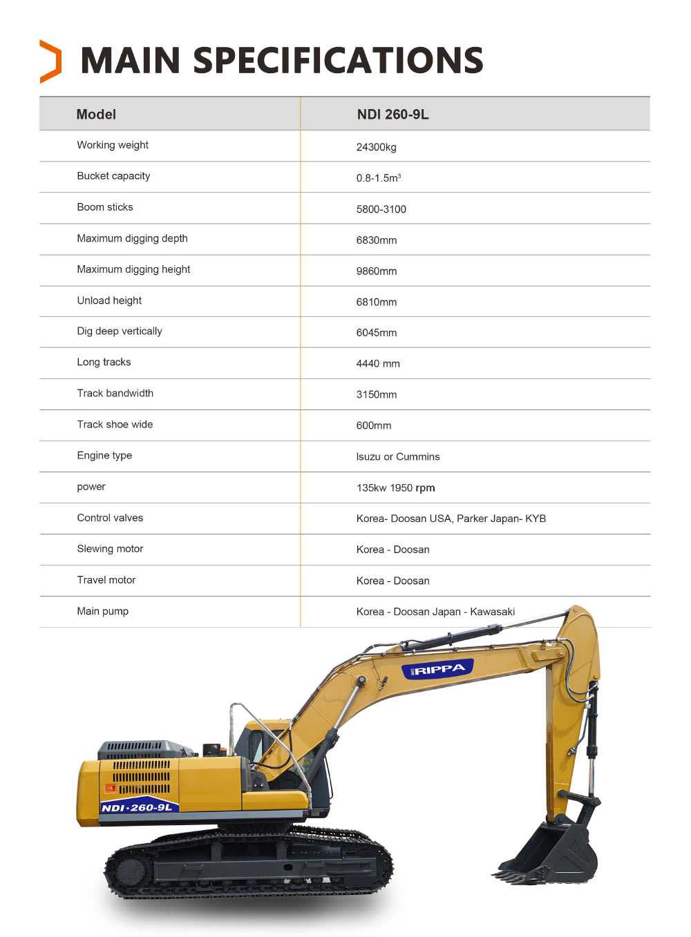 NDI260 is a 24-ton large excavator produced by rippa, the largest small excavator manufacturer in China. It uses Cummins engine and doosan accessories. It has ample performance and strong power, and the price is only half of similar excavators. It is the best of 24-ton excavators. The most cost-effective large excavator