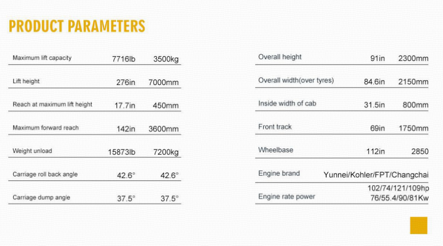 – Maximum lifting capacity: 3500 kg (7716 lbs), ensuring easy handling of heavy materials.