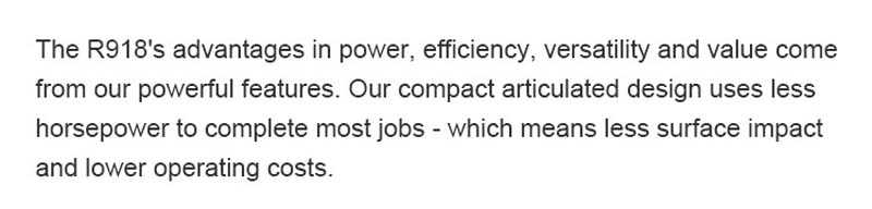Efficient performance: R918 is known for its efficient performance, using low horsepower to meet a variety of operating needs, effectively reducing surface impact and reducing operating costs.