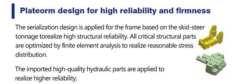 The frame adopts a serialized design to achieve high structural reliability based on the tonnage of the skid loader.