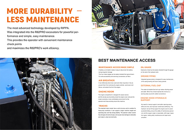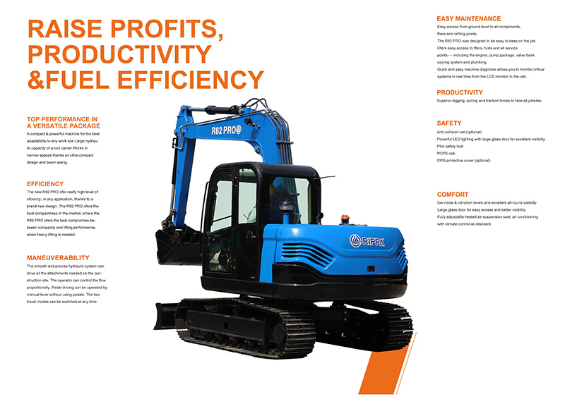 Rippa 8 Ton Excavator combines powerful power, sturdy structure, fuel saving and driving comfort. It can cope with various complex construction tasks and is an ideal equipment for construction and efficient excavation. Perfect after-sales service and durable design ensure that you get the maximum return on your investment.