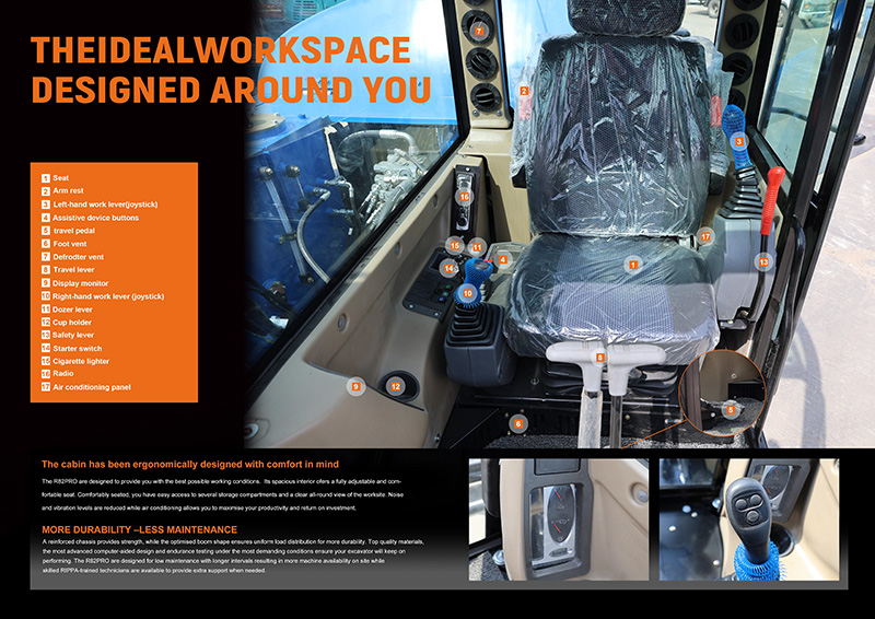 – Advanced electronic hydraulic control system reduces unnecessary energy loss and achieves the best balance between fuel consumption and operating efficiency.