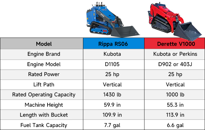 When choosing a high-performance mini loader, every detail matters — from lifting capacity to fuel efficiency. Today we compare the powerful Rippa RS06 skid steer loader with the Derette V1000 to help buyers choose the most efficient compact track loader for demanding jobs in construction, landscaping, or agriculture.