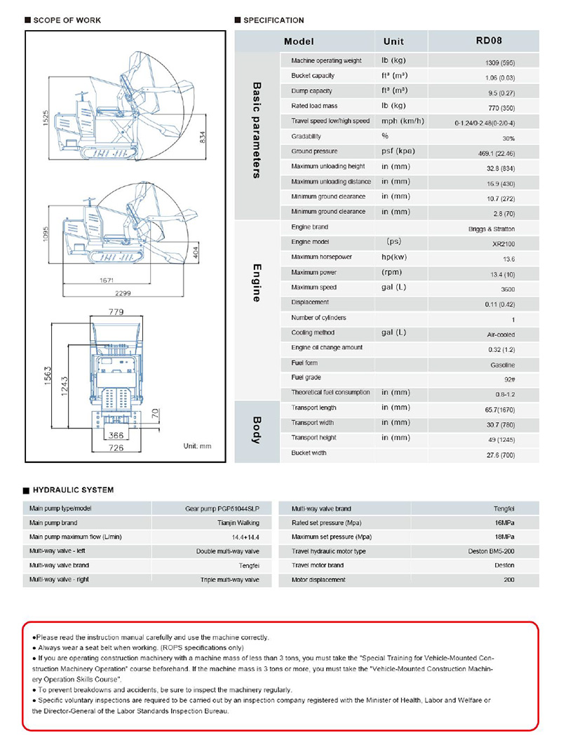 Under the urbanization process and the trend of refined agriculture, the “heavy” of traditional large machinery has become an efficiency bottleneck. RIPPA RD08 mini dump truck redefines lightweight construction machinery with the concept of “small but powerful”: