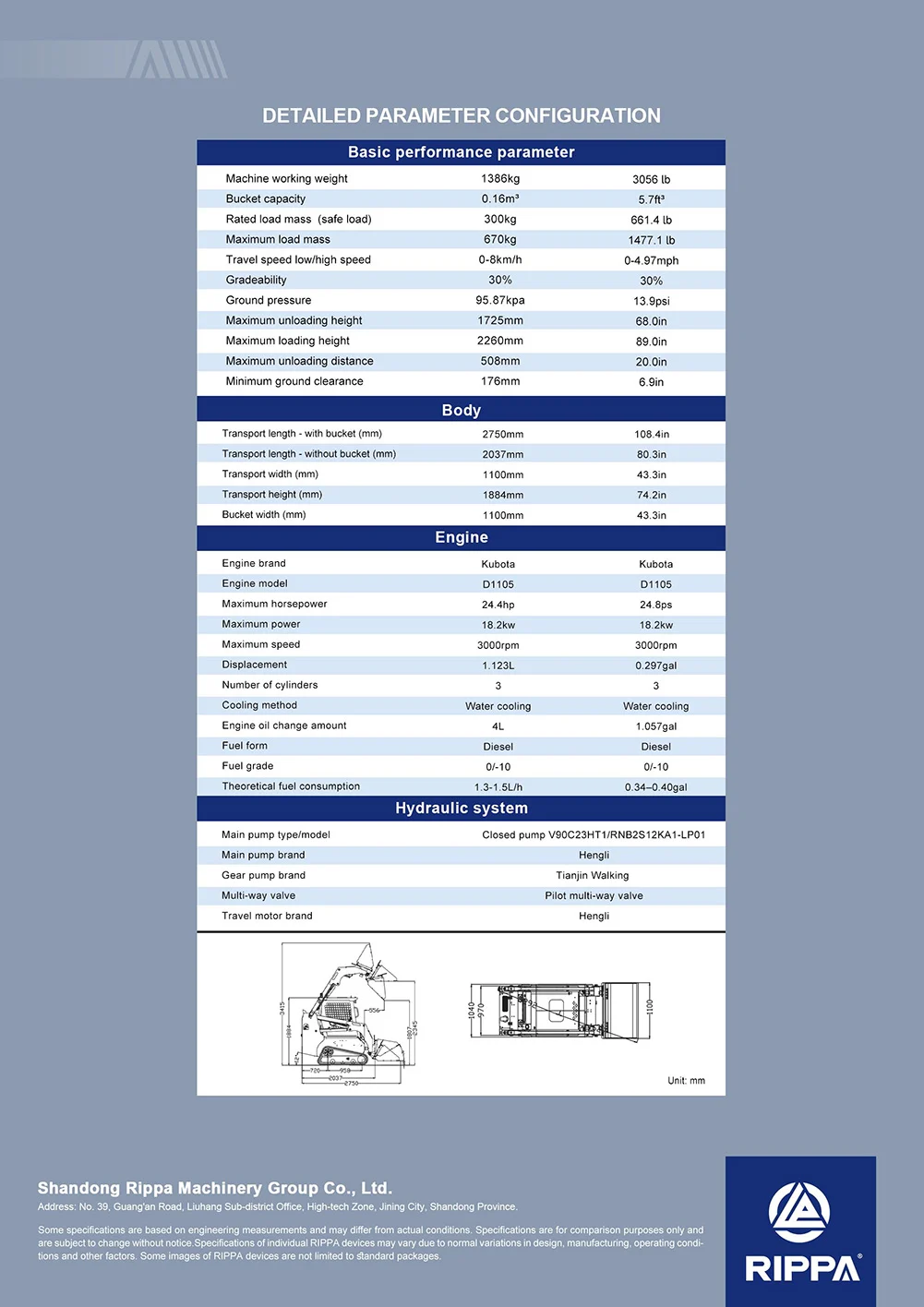 - ●Drive Type: Track-based skid loader for stability on uneven surfaces