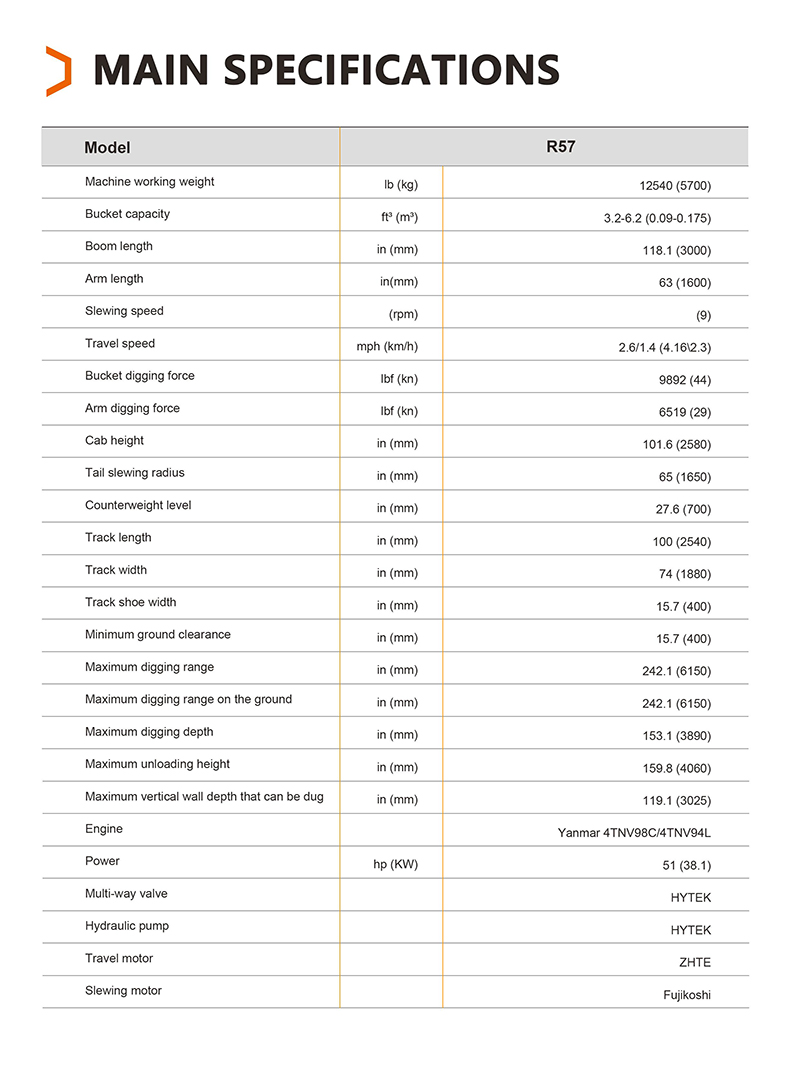 The R57 is equipped with a high-horsepower Yanmar engine that meets EPA standards. This high-efficiency engine not only ensures strong power output, but also operates smoothly in multiple countries and regions to adapt to various market needs.