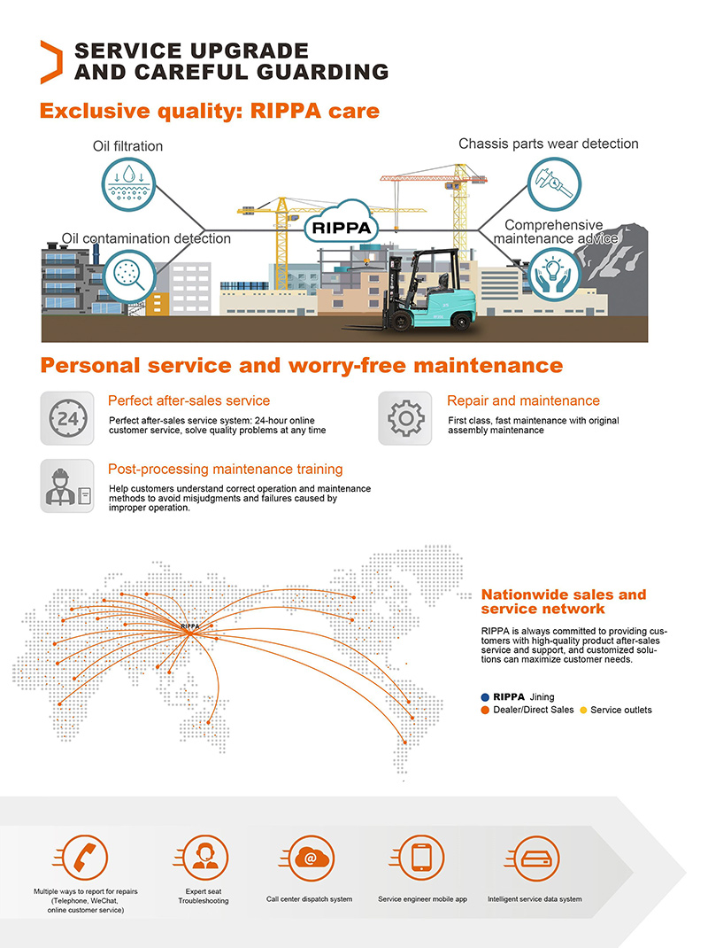 The RF35E electric forklift launched by RIPPA Group is a heavy-duty handling equipment that combines strong load-bearing capacity, intelligent design and excellent performance. With excellent detail optimization and environmental protection features, RF35E is perfectly suitable for various industrial applications and is an ideal choice for improving production efficiency.