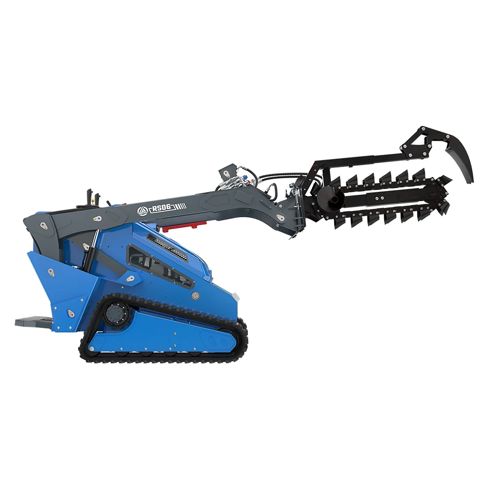 The RS06 skid steer loader isn’t limited to trenching. It supports a wide range of attachments — such as buckets, augers, snow blowers, pallet forks, and sweepers — making it a multi-purpose machine for all-season applications. Whether for landscaping, construction, or municipal maintenance, the RS06 adapts to diverse job requirements effortlessly.