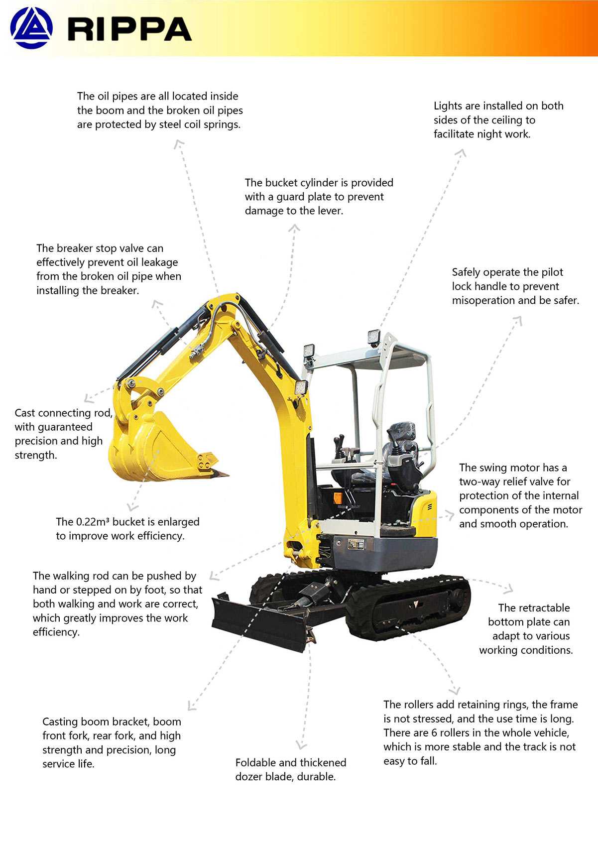 As a well-known excavator manufacturer in China, rippa is very honored to introduce to you our cost-effective excavator-L335 excavator. This equipment integrates a Kubota engine and a powerful tonnage of 2.2 tons, and will become your right assistant in various working conditions.