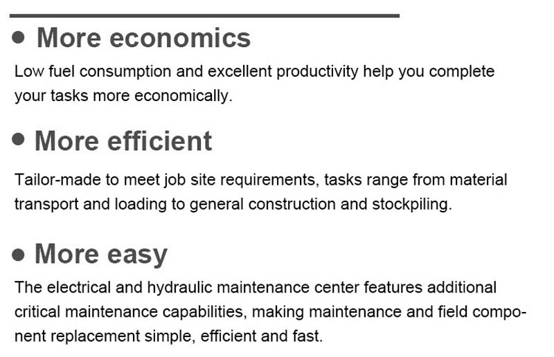 – Easy to use: The simple and intuitive operating interface and wide view of the cab provide a comfortable working experience for the operator.