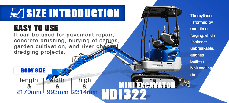 Rippa NDI322 is suitable for landscaping, farm renovation, building houses, municipal public buildings, and garden construction.NDI322 has pilot properties and is easy and fast to operate.