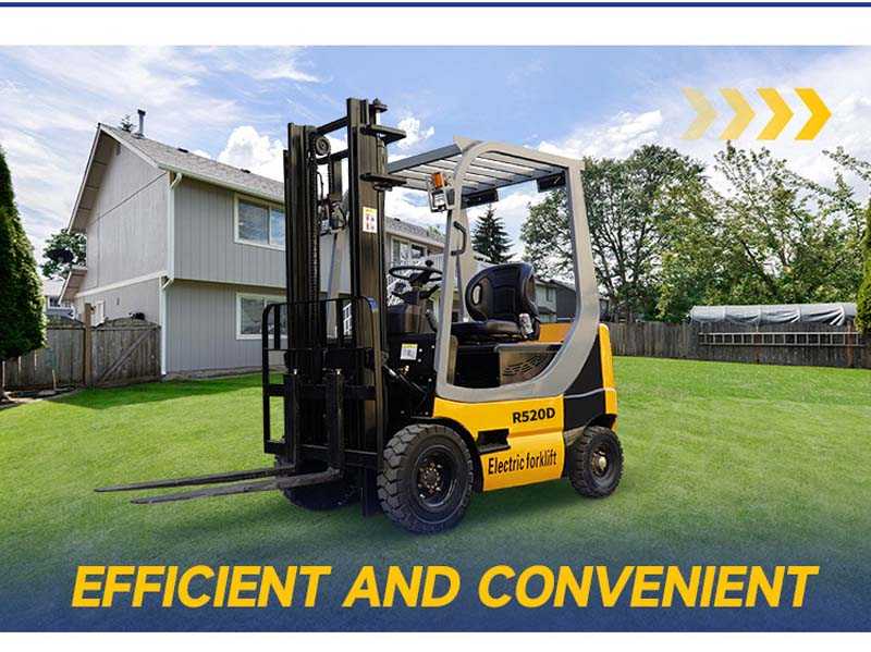 In summary, the R520D electric forklift has become a popular 2-ton forklift product with its powerful load-bearing capacity, efficient power system, flexible operating performance, durable and beautiful design, wide range of applicable scenarios and electric environmental protection and energy-saving characteristics.