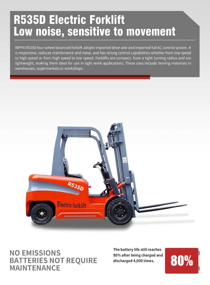 The R550N electric forklift has become a star product in the foreign export market with its excellent performance, stable operation and excellent durability. Whether you are a warehouse manager or a factory logistics manager, R550N can be your powerful assistant to improve work efficiency and reduce operating costs. Welcome to choose Rippa, choose R550N electric forklift, and start a new era of efficient and environmentally friendly logistics with us.