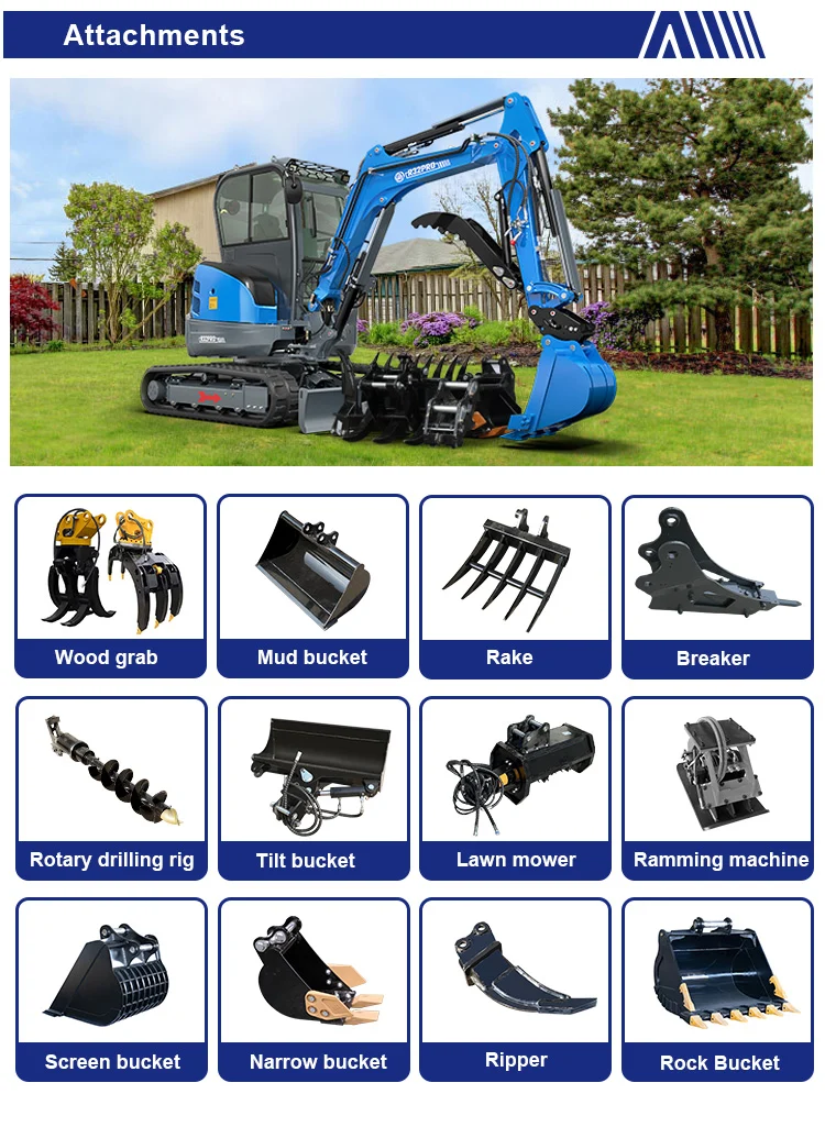 Supports a wide range of attachments such as buckets, breakers, augers, and grapples for versatile job applications.